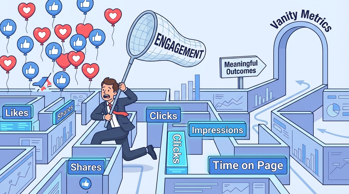 Big net, tiny results: chase likes all you want, the exit’s still labelled ‘Meaningful Outcomes’.